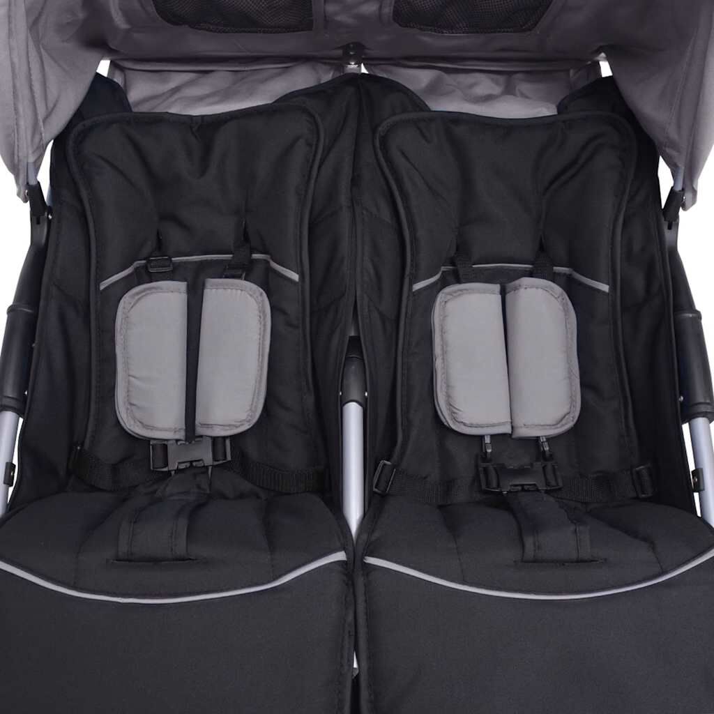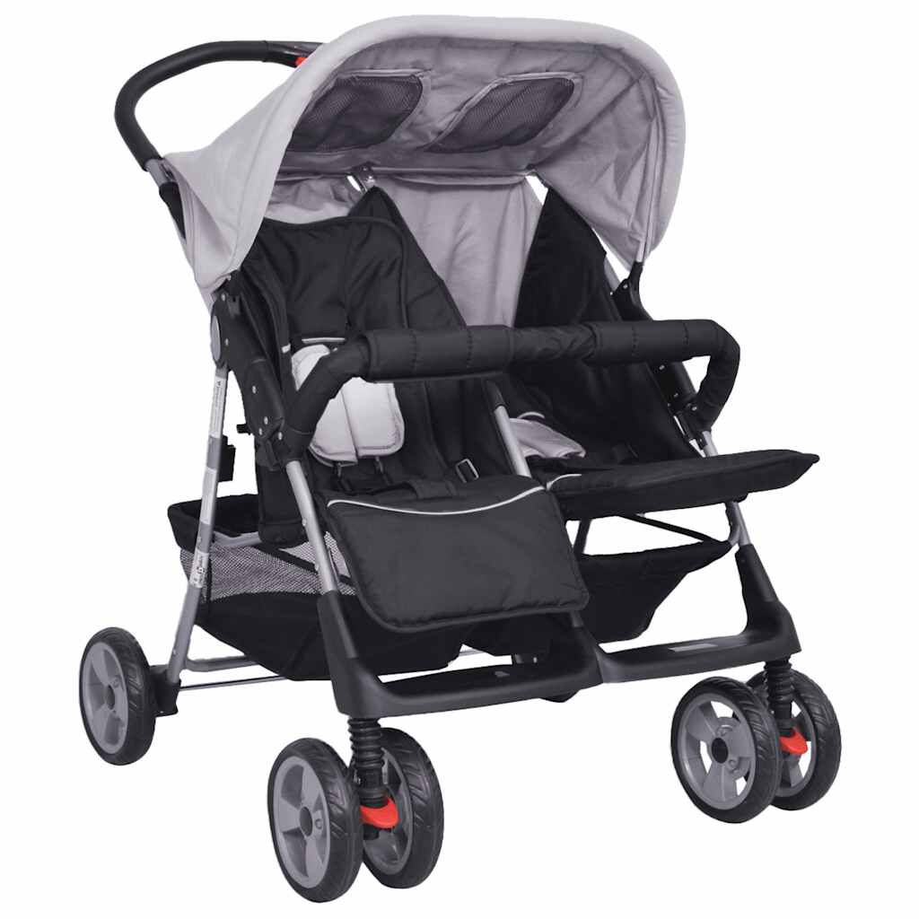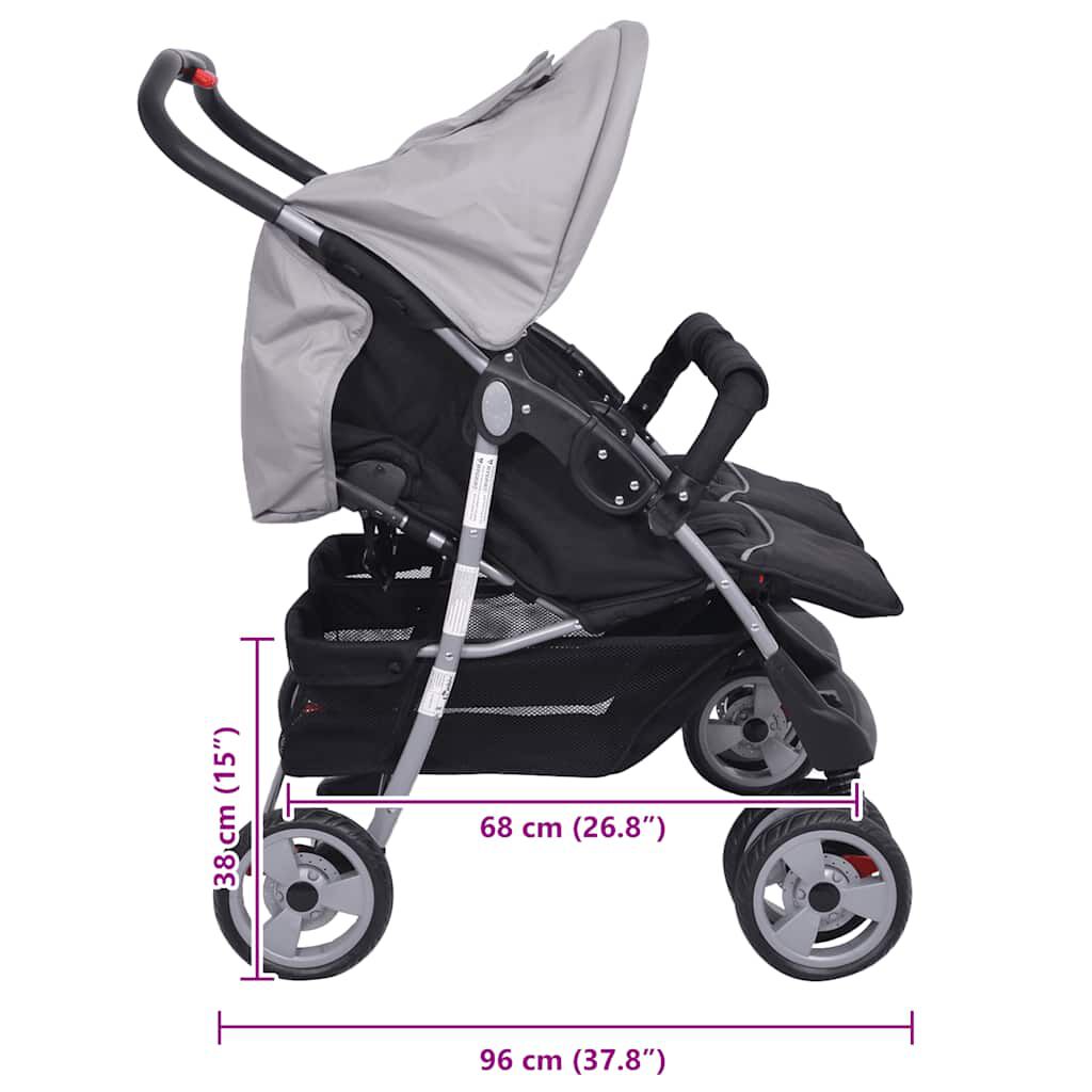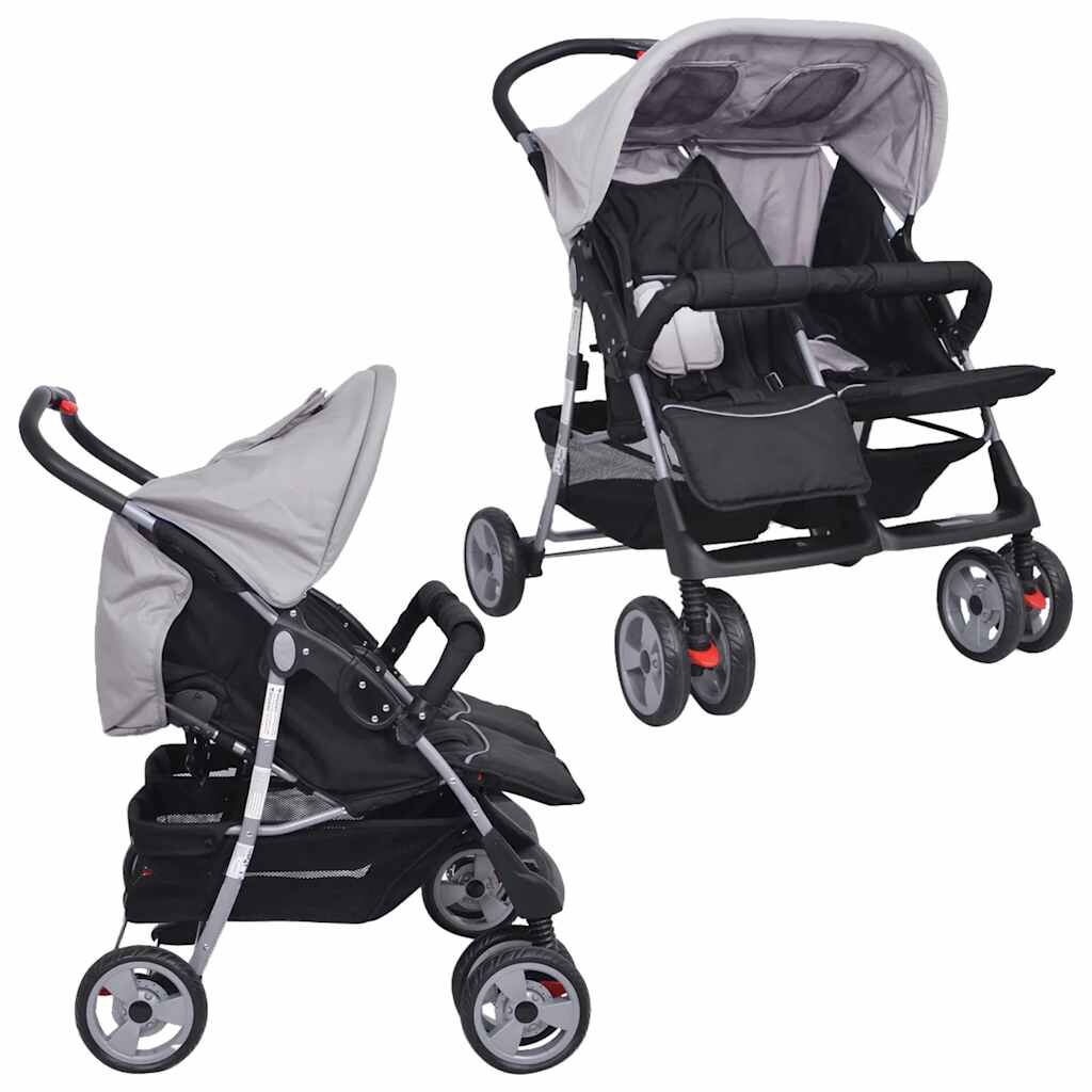 Cărucior dublu din oțel, gri și negru