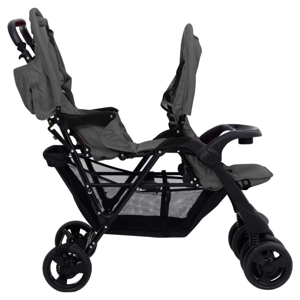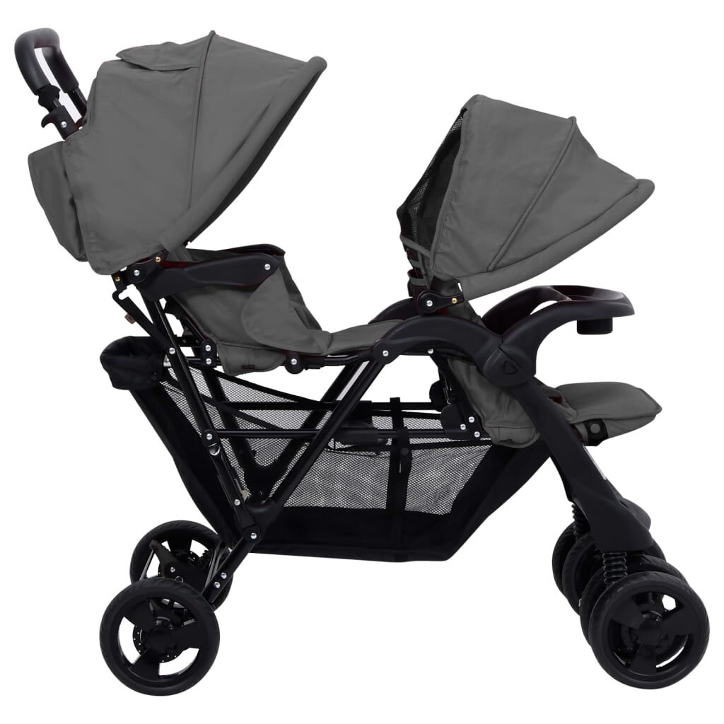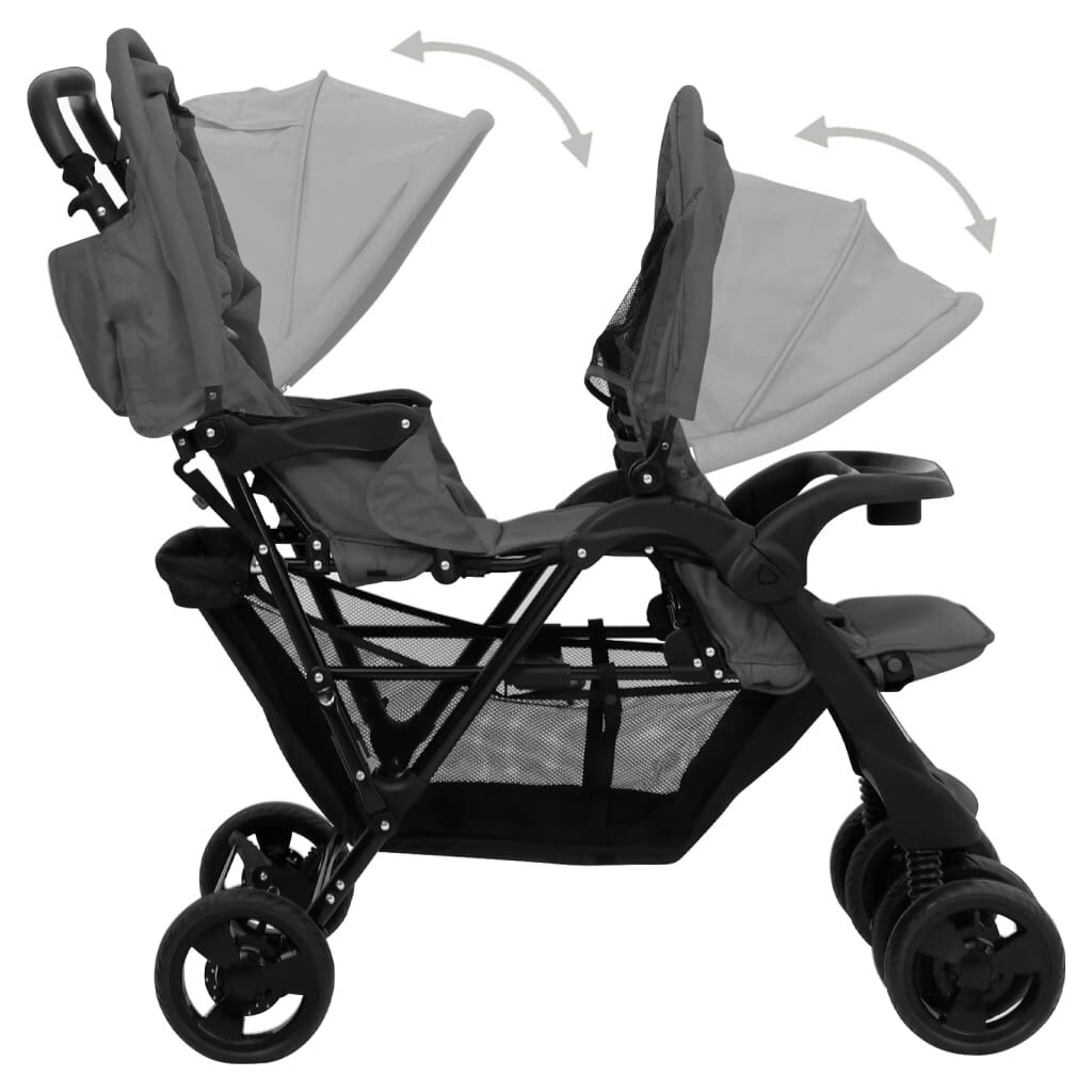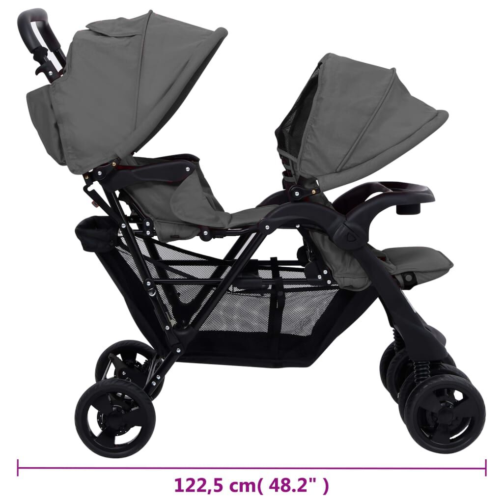 Cărucior pentru gemeni în tandem, gri închis, oțel