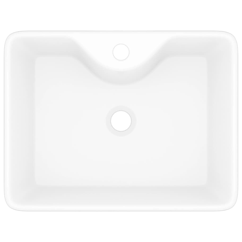 Chiuvetă de baie pătrată din ceramică cu gaură pentru robinet, alb