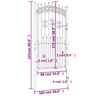 Poartă gard cu vârf negru 103x225 cm oțel vopsit electrostatic