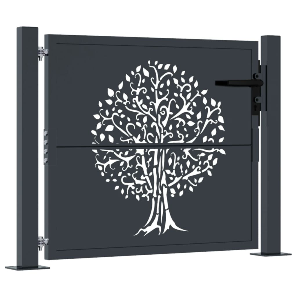 Poartă pentru grădină, antracit, 105x80 cm, oțel, design copac
