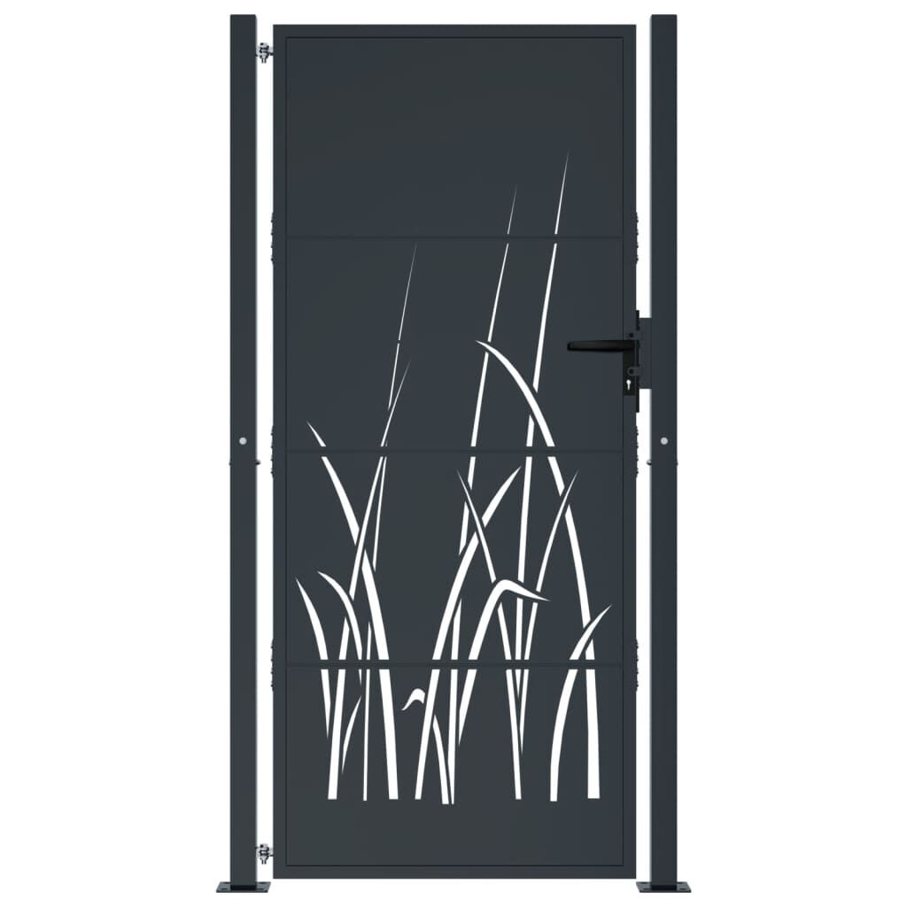Poartă pentru grădină, antracit, 105x205 cm, oțel, model iarbă