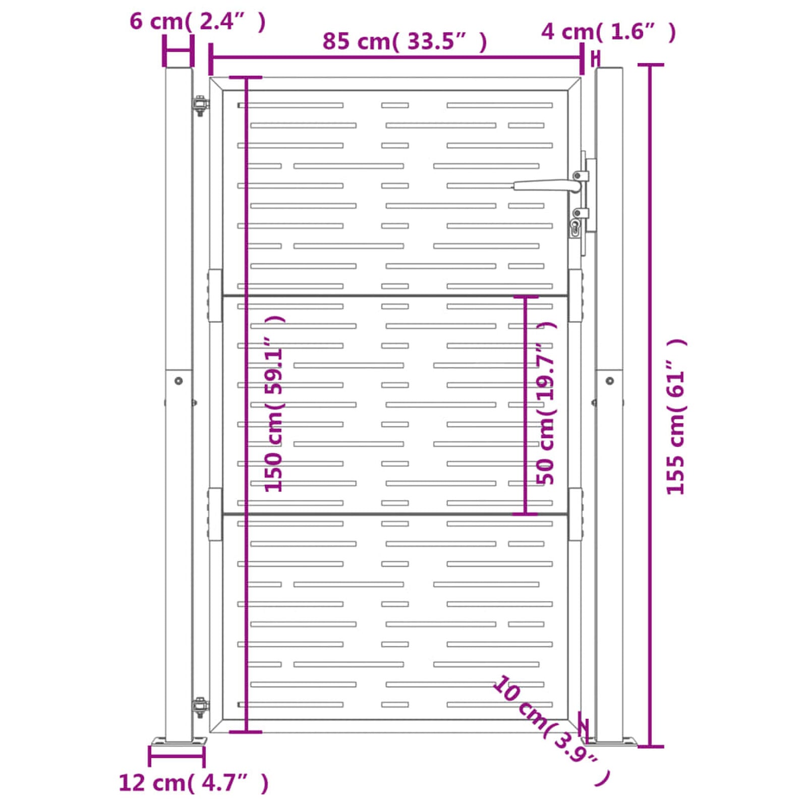 Poartă pentru grădină, antracit, 105x155 cm, oțel dreptunghiuri
