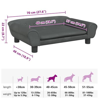 Pat de câini, gri închis, 70x48x22 cm, catifea