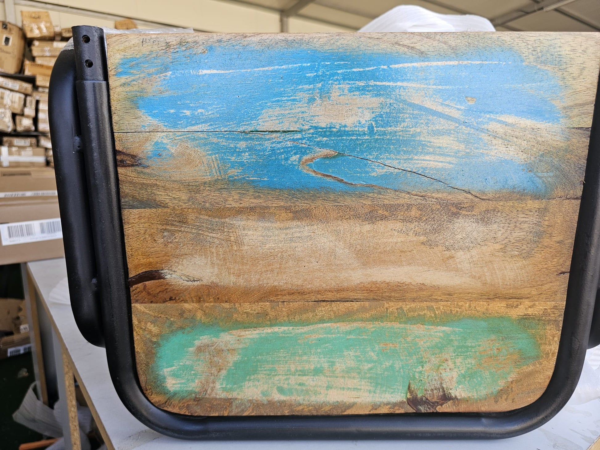 - Material: Lemn masiv reciclat + oțel vopsit electrostatic