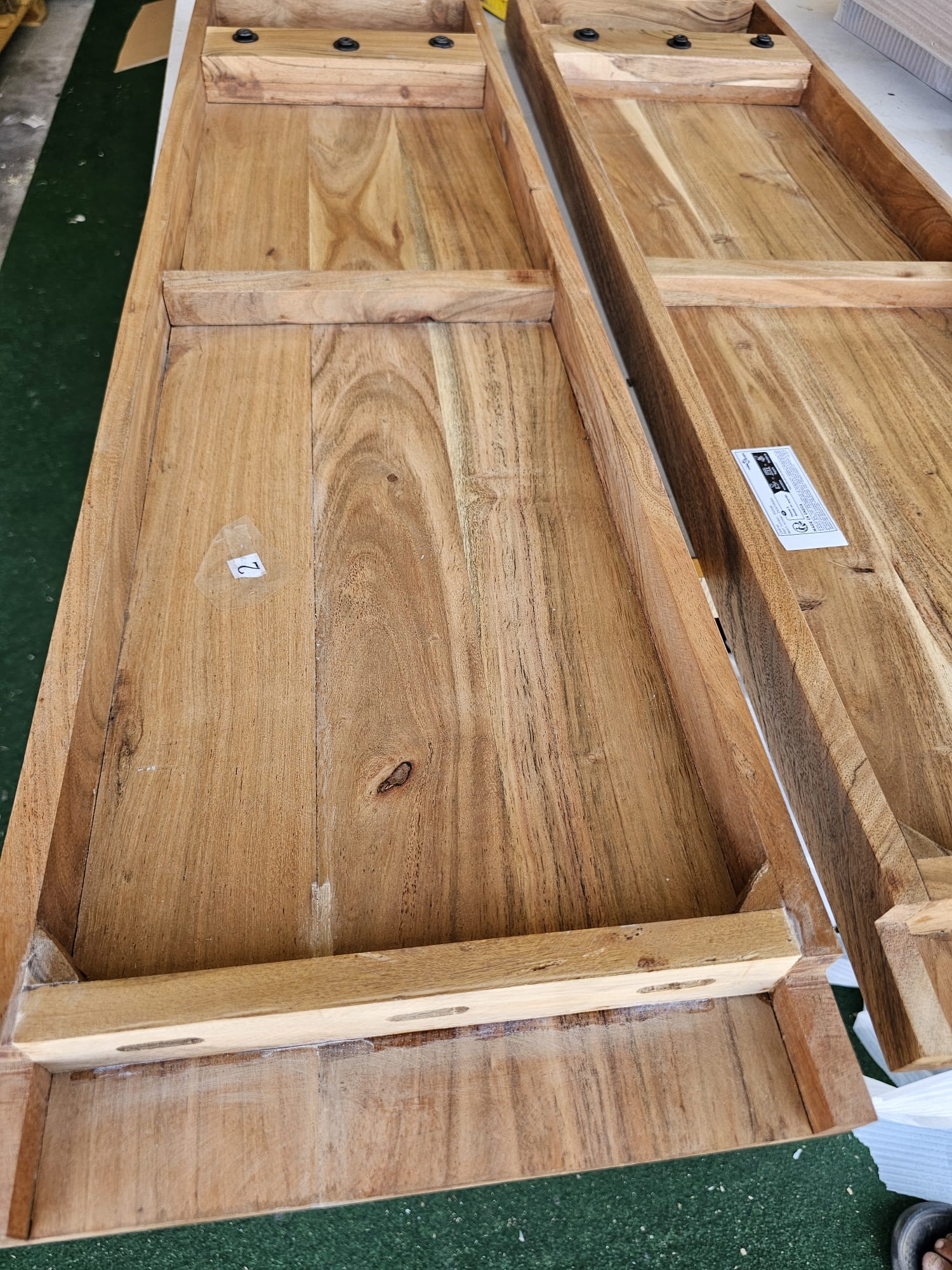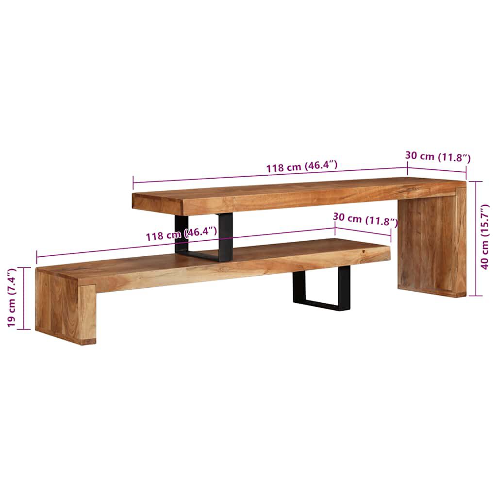 Comoda TV este realizată manual din lemn masiv de acacia, stabil, durabil și frumos, iar măiestria cu care a fost creată adaugă la stilul retro spectaculos. Fiecare pas al procesului este realizat cu cea mai mare grijă, fie că este vorba de lustruire sau lăcuire. Granulația frumoasă a lemnului face ca fiecare piesă de mobilier să fie unică și ușor diferită de celelalte. În plus, dulapul TV cu 2 niveluri oferă spațiu amplu pentru stocarea dispozitivelor multimedia, a suporturilor media și a oricăror alte elemente pe care doriți să le expuneți sau să le păstrați la îndemână. Partea superioară a acestui suport TV poate fi îndepărtată sau plasată în diferite configurații pentru a face standul mai lat sau mai îngust.