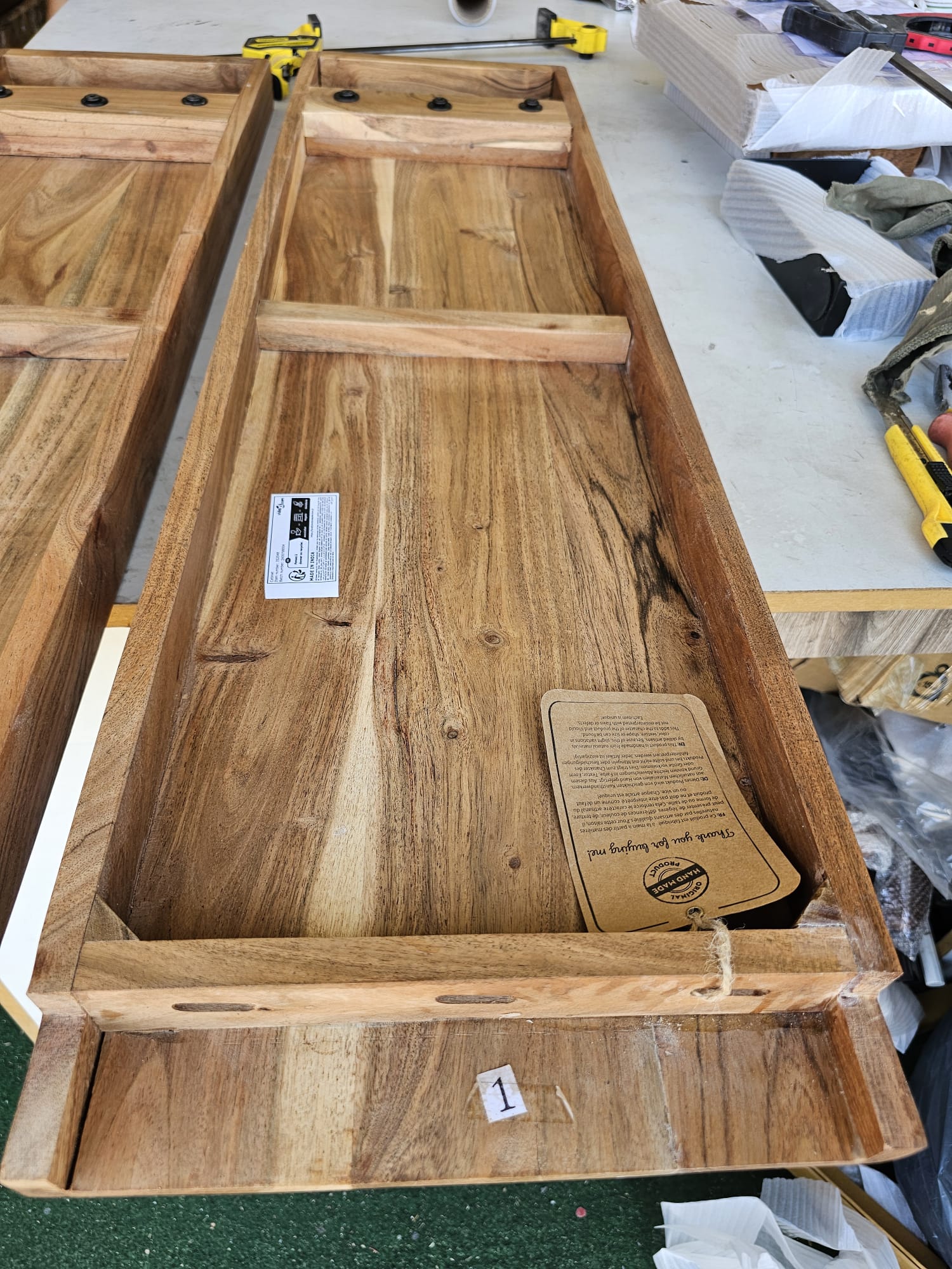 - Material: Lemn solid de acacia + picioare din fier forjat