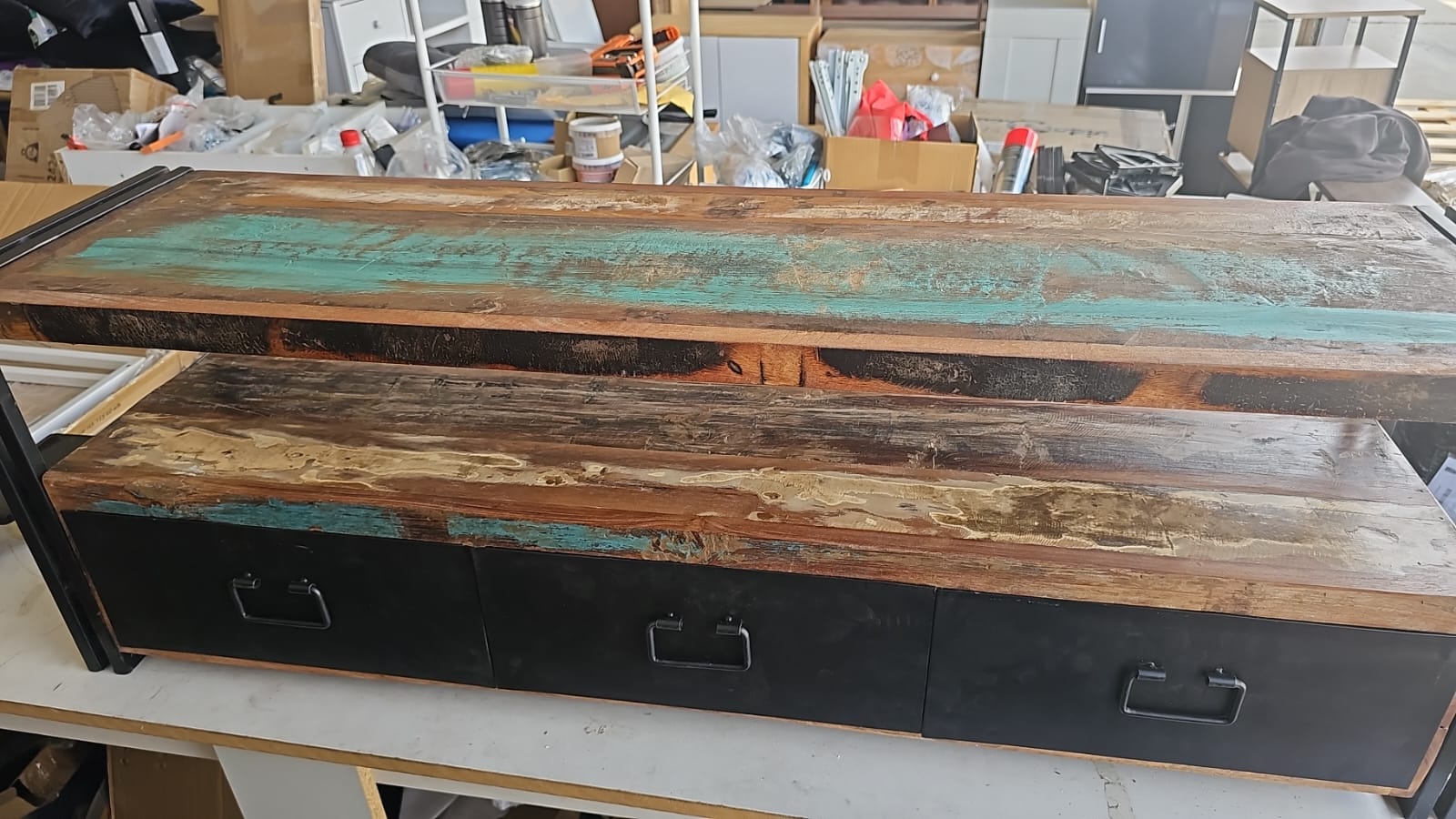 Acest dulap HIFI este realizat din lemn masiv reciclat, provenit din traverse, podele și grinzi de sprijin din clădiri vechi demolate și poate conține diferite tipuri de lemn precum lemnul de pin, tec, fag, stejar, cedru, mango, acacia etc. Aceasta înseamnă că lemnul recuperat păstrează caracteristicile acestor tipuri diferite de lemn. Lemnul recuperat este deja învechit, erodat și uscat, astfel încât acesta nu se va micșora sau îndoi. Granulația frumoasă a lemnului face ca fiecare piesă de mobilier să fie unică și ușor diferită de următoarea. Semnele de uzură și structura vizibilă a granulației conferă fiecărei console o istorie proprie și un aspect unic. Fiecare pas al procesului de fabricație este realizat cu cea mai mare grijă, fie că este vorba de lustruire, vopsire sau lăcuire. Comoda TV are 3 sertare pentru depozitarea obiectelor mărunte, și un raft pentru depozitarea aparatelor multimedia, a consolelor de gaming sau a revistelor. Picioarele din oțel adaugă un plus la robustețea și stabilitatea comodei, precum și la stilul său industrial. Este ușor de asamblat.