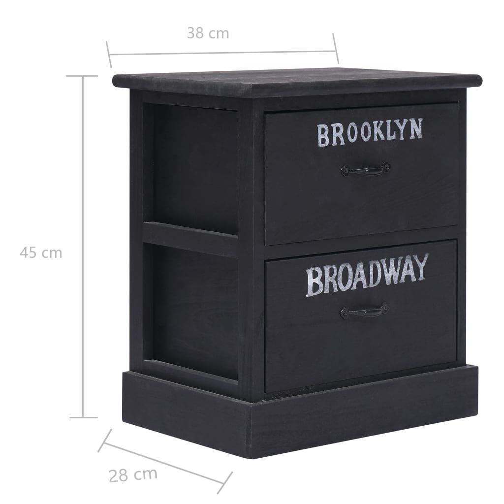 Noptieră, negru, 38 x 28 x 45 cm, lemn de paulownia