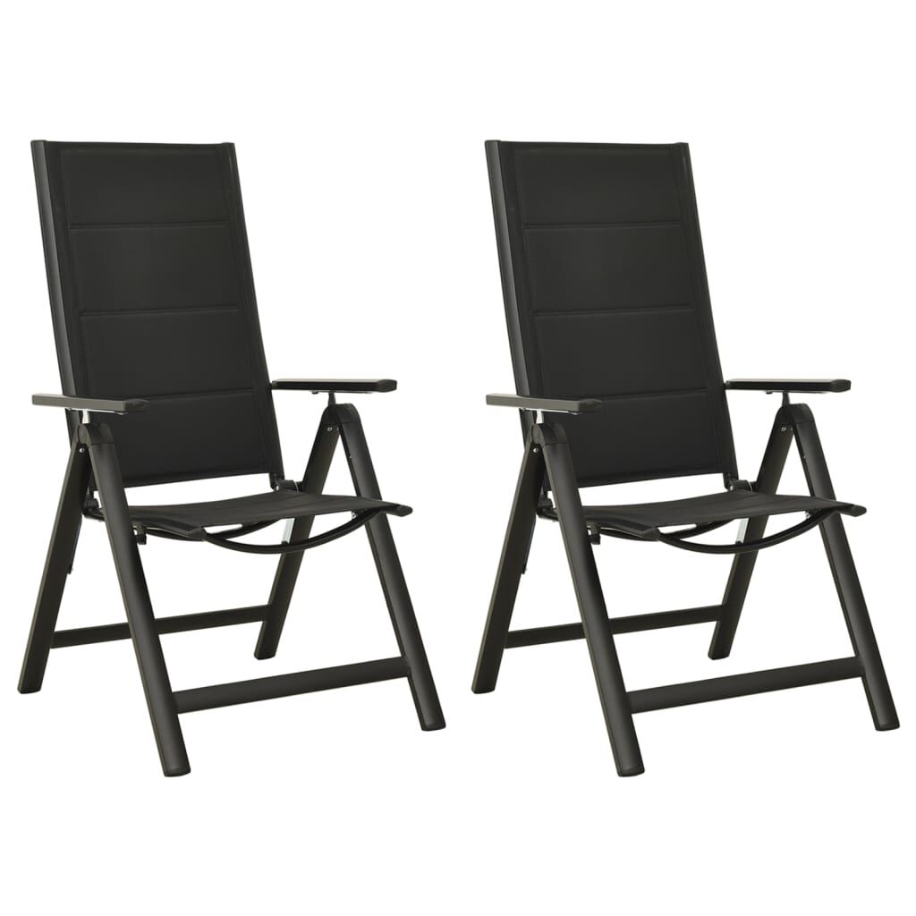 Scaune de grădină pliante, 2 buc., negru, textilenă&aluminiu