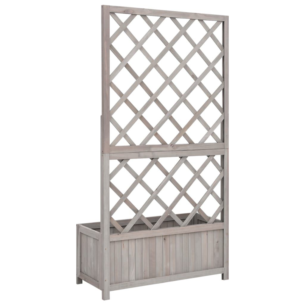 Jardinieră colț cu spalier, gri, 70x30x135 cm, lemn masiv brad