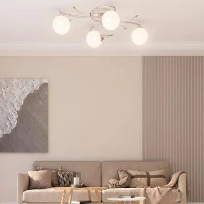 Plafonieră abajururi sferice din sticlă, 4 becuri LED G9