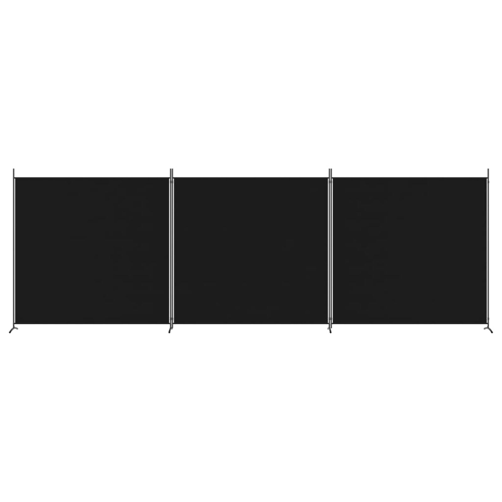 Paravan de cameră cu 3 panouri, negru, 525x180 cm, textil