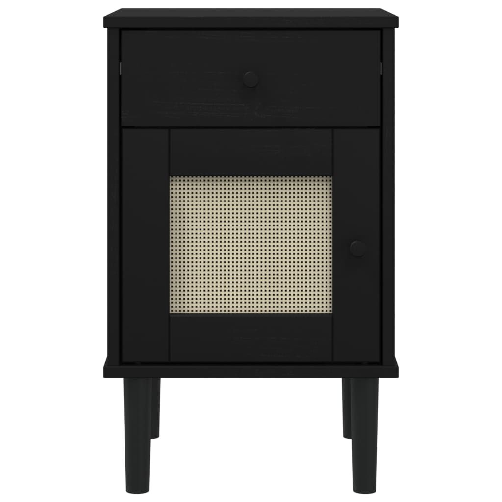 Noptieră SENJA, aspect ratan negru, 40x35x65 cm, lemn masiv pin