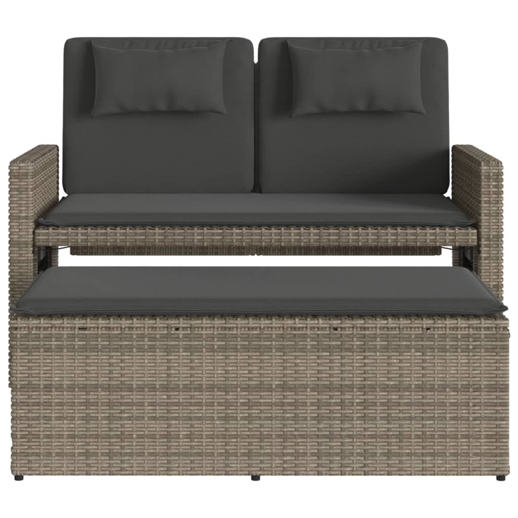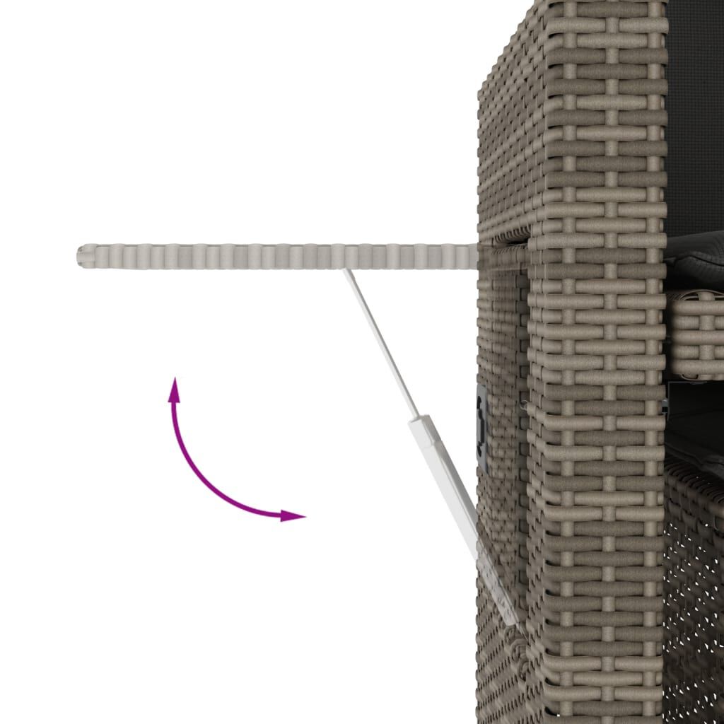 Bancă de grădină rabatabilă cu perne, gri, poliratan