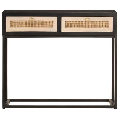 Masă consolă, negru, 90x30x76 cm, lemn masiv de mango și fier
