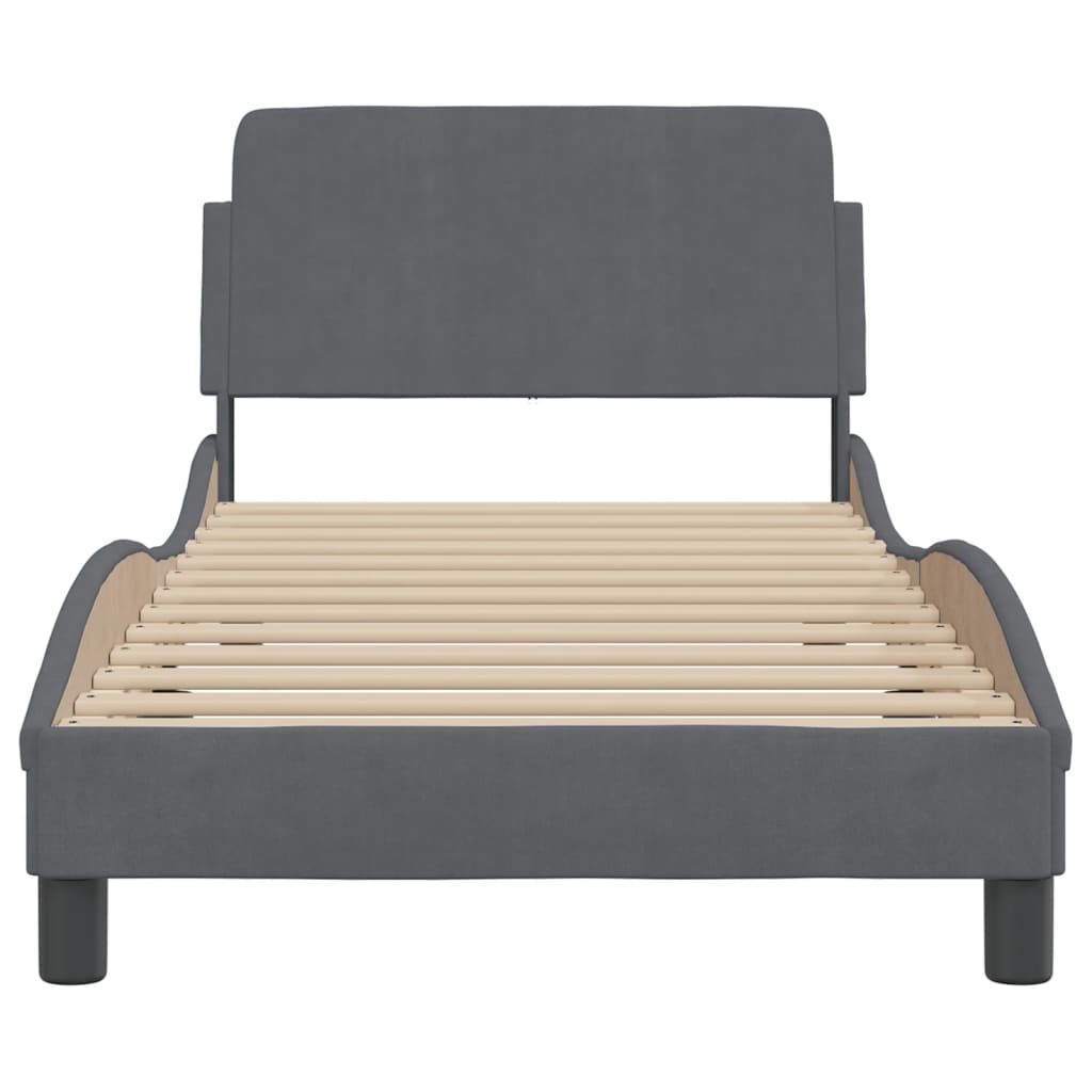 Cadru de pat fără saltea, gri închis, 90x200 cm, catifea