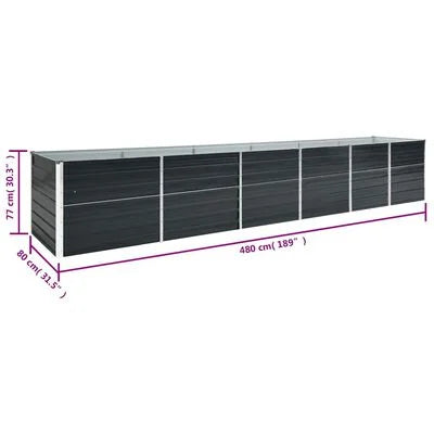 Strat înălțat grădină, antracit, 480x80x77 cm, oțel galvanizat