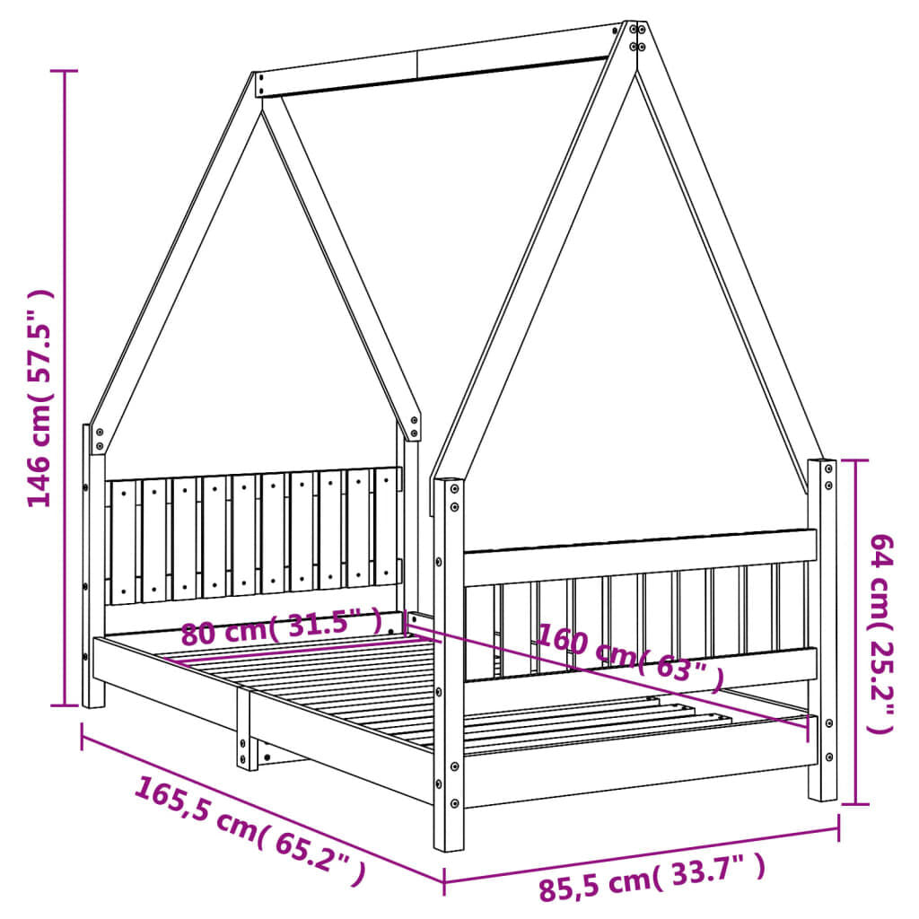 Cadru de pat pentru copii, 80x160 cm, lemn masiv de pin