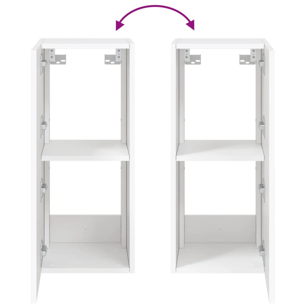 Comode TV de perete cu lumini LED, 2 buc., alb, 30,5x35x70 cm