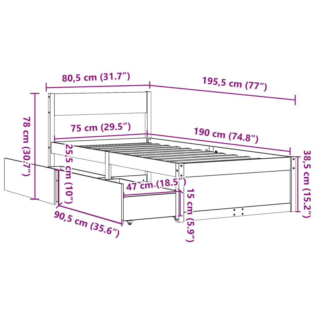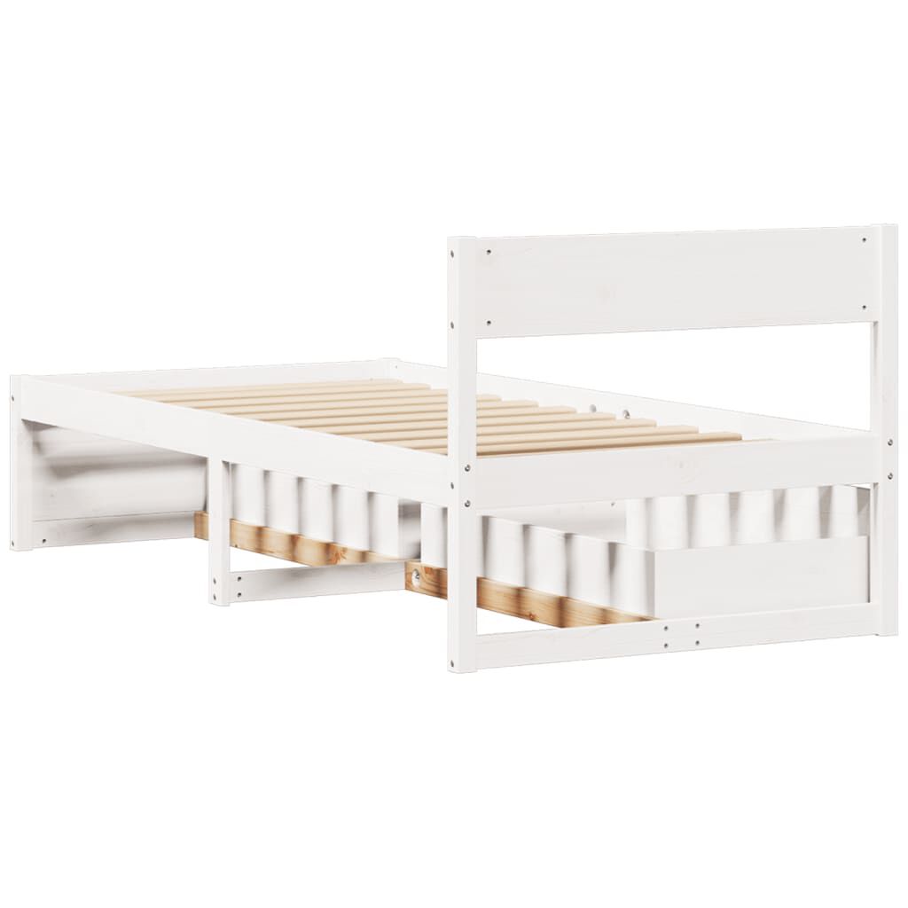 Cadru de pat fără saltea, alb, 75x190 cm, lemn masiv de pin
