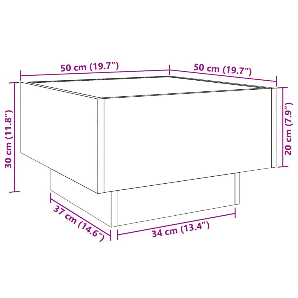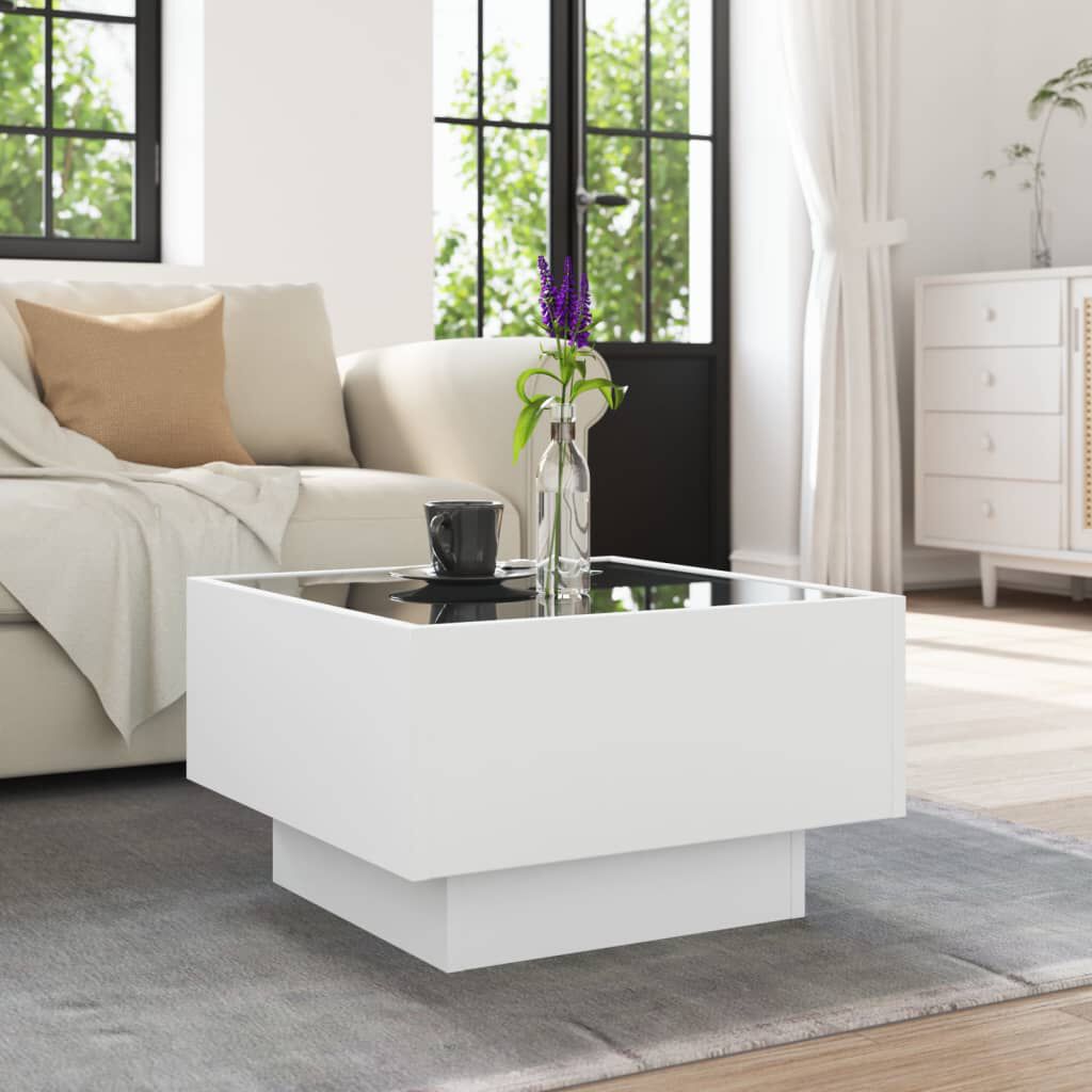Măsuță de cafea cu LED, alb, 50x50x30 cm, lemn prelucrat