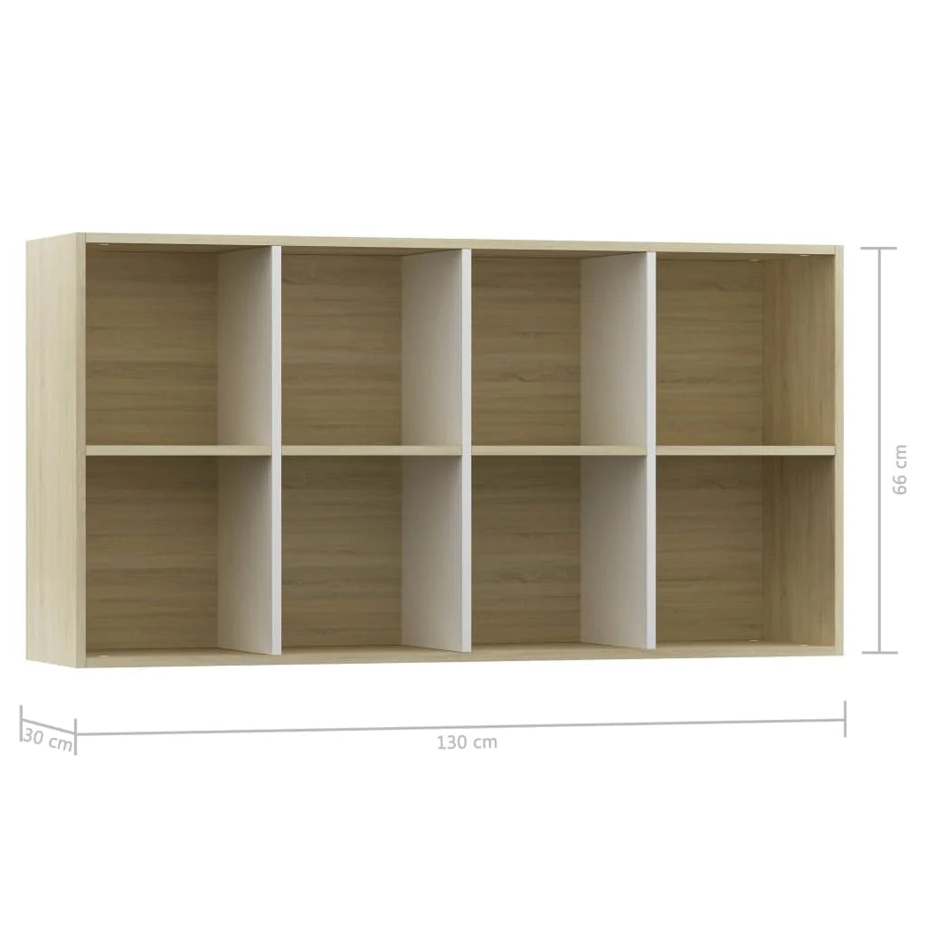 Bibliotecă/Servantă, alb și stejar sonoma, 66x30x130 cm, PAL