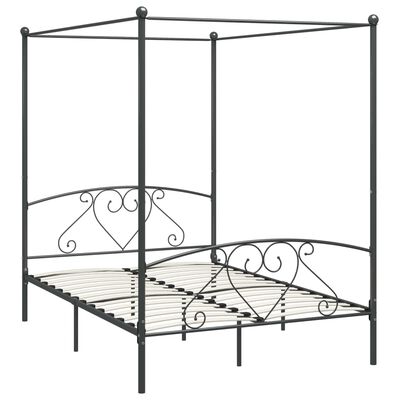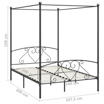 Cadru de pat cu baldachin, gri, 160 x 200 cm, metal