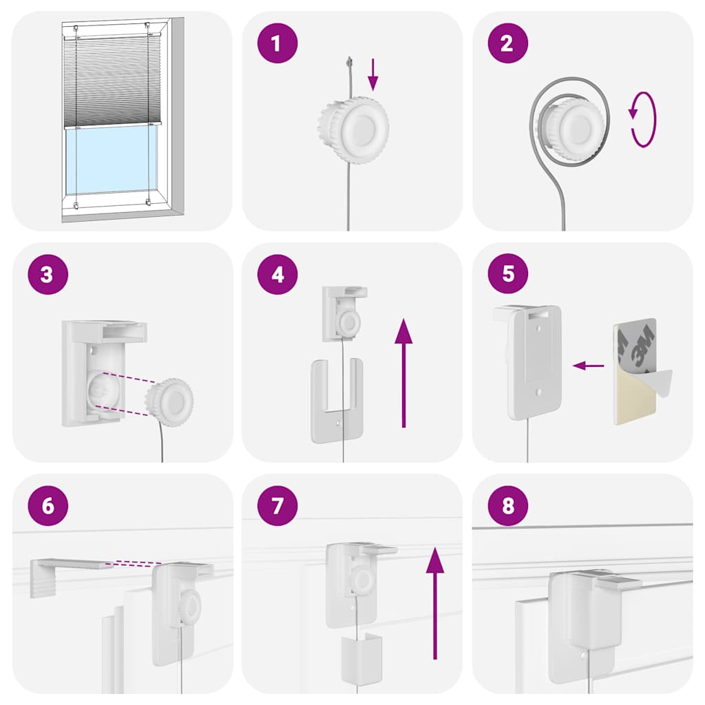 • Două moduri de asamblare: Puteți atașa jaluzelul plisat pe perete sau fereastră cu șuruburi sau fără găurire folosind console de prindere, în funcție de nevoi.