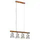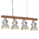 Abajururile din fier, cu finisaj argintiu, si lemn masiv de mango, cu finisaj maro decolorat similar cu culoarea unui hambar, se vor potrivi perfect intr-un interior rural sau industrial. Lampa de tavan cu 4 abajururi are o priza E27 pentru un bec de maxim 25 de wati. Puteti monta becuri E27 cu diferite culori deschise, pentru a crea o atmosfera de relaxare si odihna.