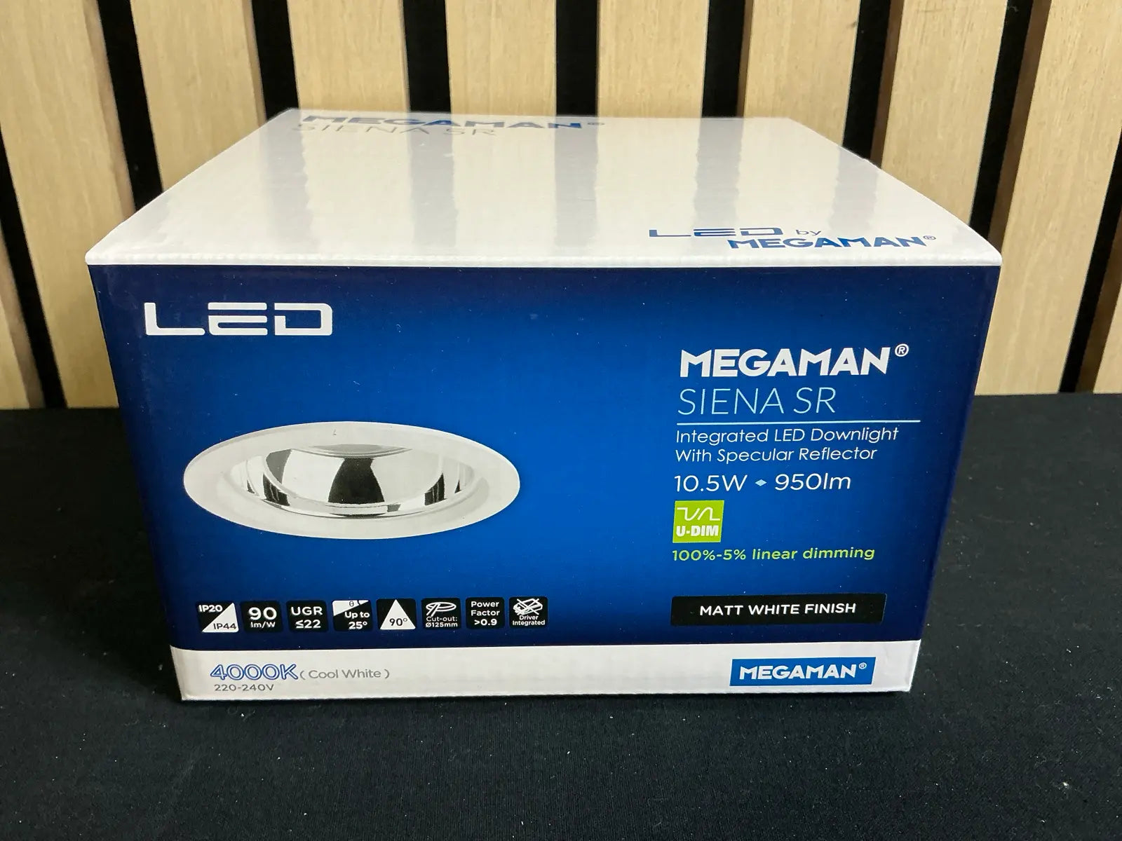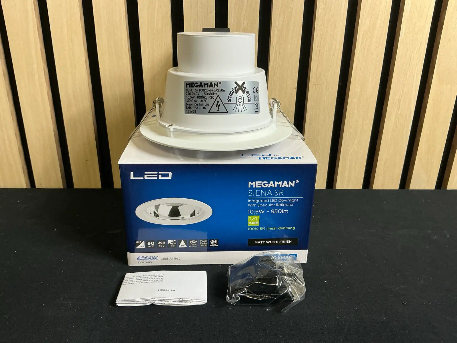 Descoperiți excelența în iluminat profesional cu spotul LED încastrat Megaman Siena SR, echipat cu tehnologia avansată Specular Reflector pentru performanțe luminoase superioare. Acest corp de iluminat premium combină designul sofisticat cu eficiența energetică maximă.