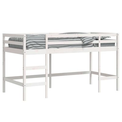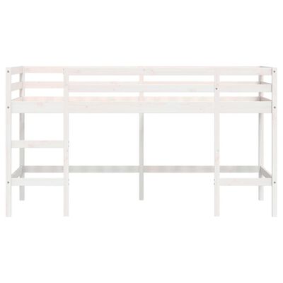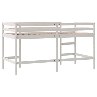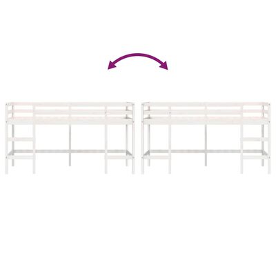 Pat etajat de copii cu scară, alb, 90x200 cm, lemn masiv pin