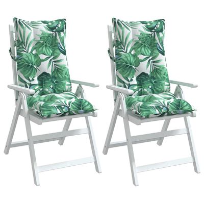 Perne de scaun spătar înalt, 2 buc, model frunze, textil Oxford