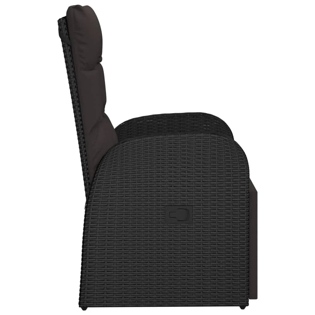 Scaun de grădină rabatabil cu perne, negru, poliratan