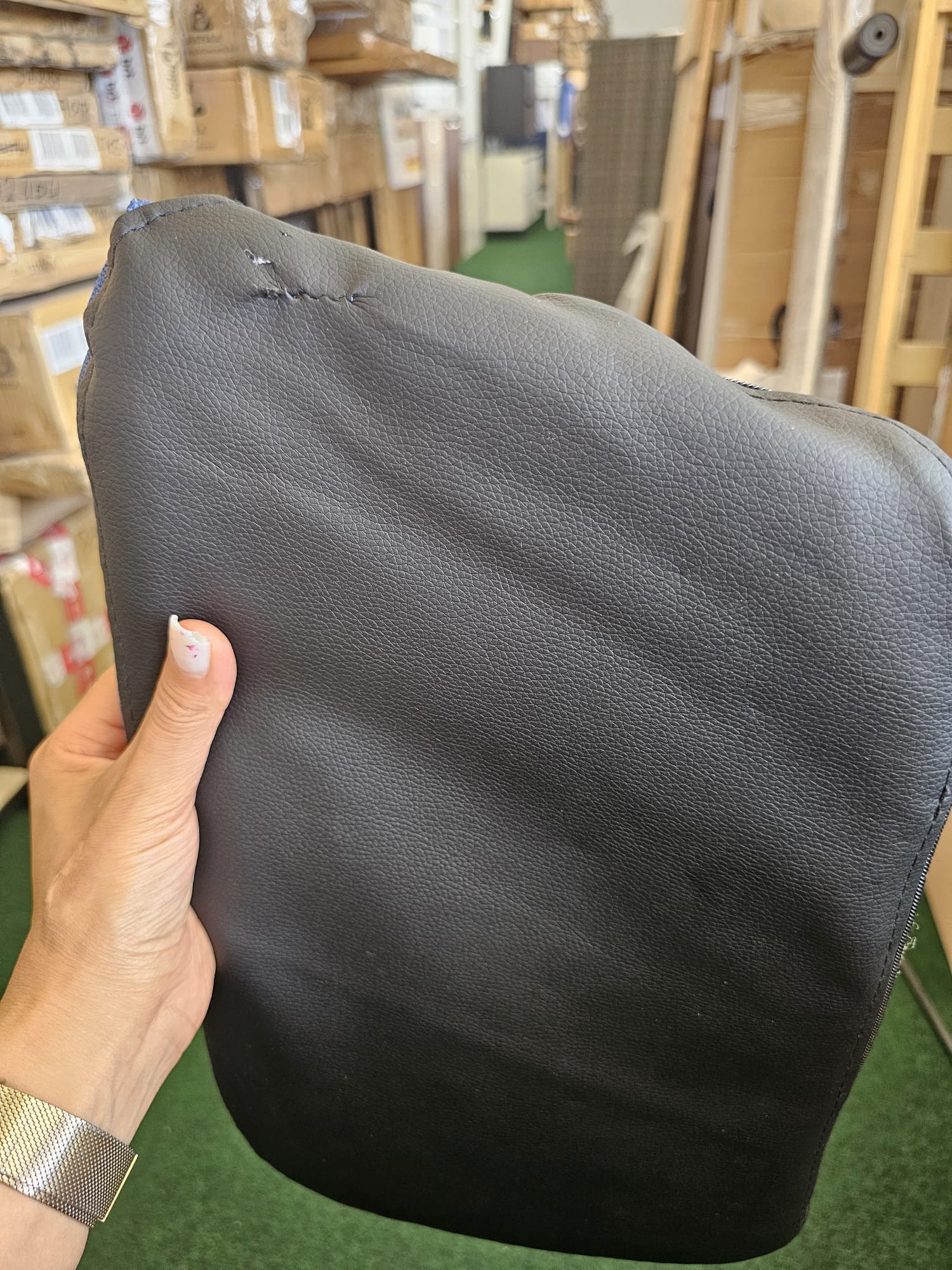 - Material: țesătură (100% poliester), piele artificială (75% PVC, 5% bumbac, 20% poliester), metal, placaj