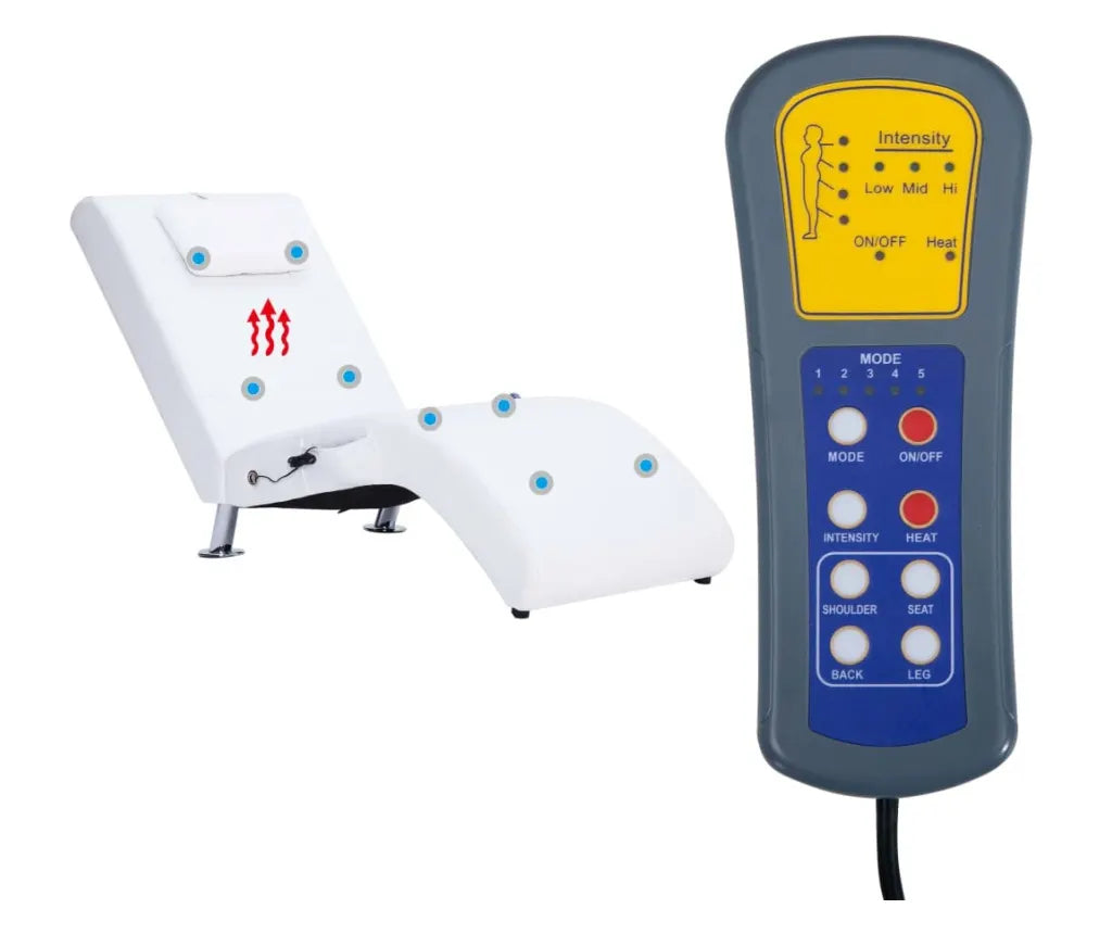 Mai mult, sezlongul se remarca prin functii de masaj si incalzire. Cu diverse puncte de masaj, zone si intensitati, precum si cu o telecomanda inclusa, sezlongul va va aduce cu siguranta confortul maxim.