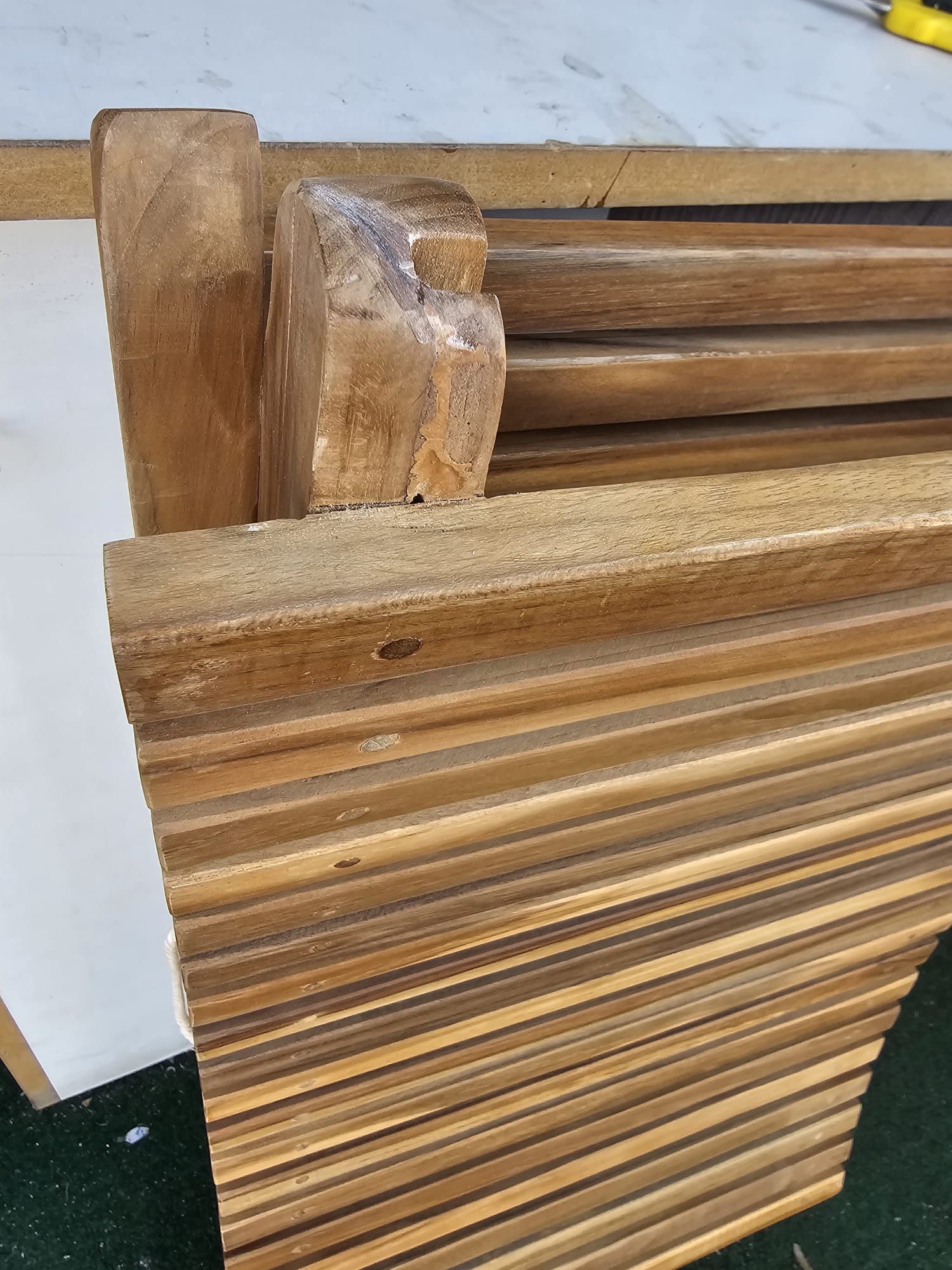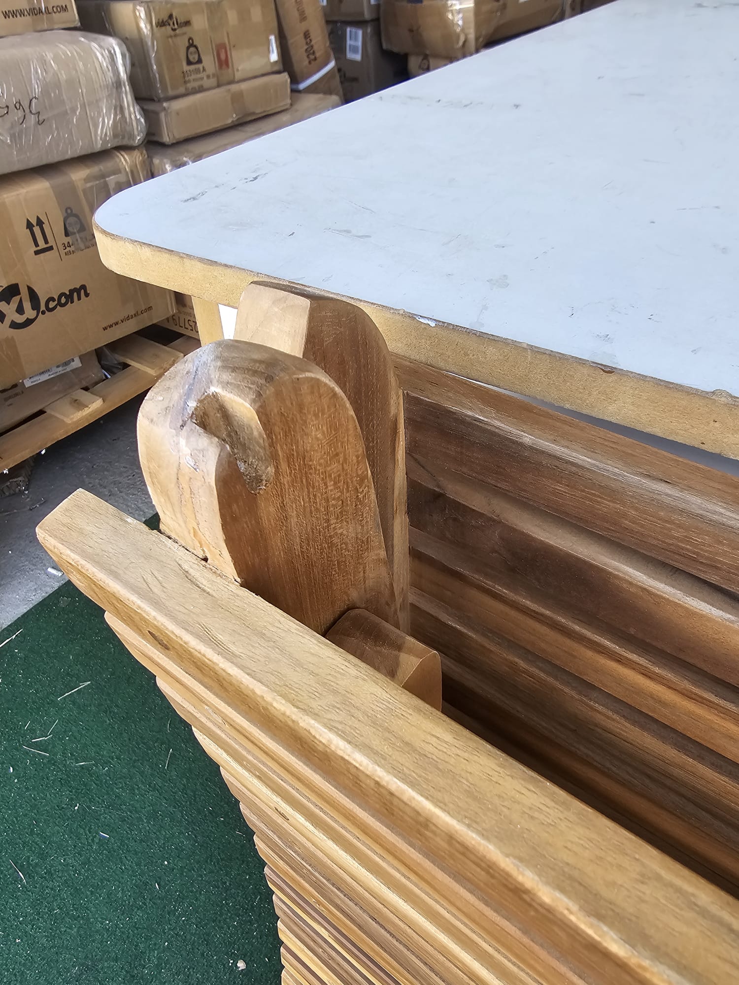 - Material: Lemn de tec de esenta tare, slefuit fin, cu finisaj pe baza de apa