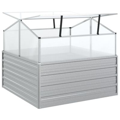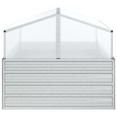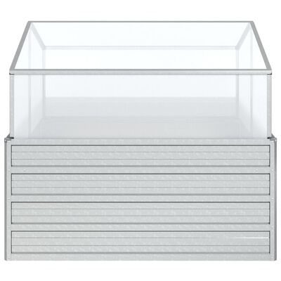 Strat înălțat cu seră de grădină, argintiu, 100x100x85 cm